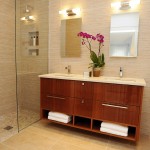 In the en-suite master bath, floor-to-ceiling textured ceramic wall tiles and large format Porceleanosa floor tiles create a magnificent backdrop for a floating, Crema Marfil marble-topped double vanity, custom designed by HDDesignBuild. The barrier-free walk-in shower features marble floors and polished chrome Kohler fixtures. The oversized main bath offers a spa-like “wet room” with a free-standing deep soaking tub with hand spray, custom vanities and a comfort-height, energy efficent toilet.
